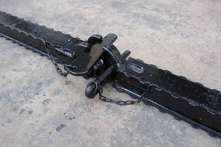 鉸接頂梁是煤礦巷道中常用的支護頂梁,其長度比較短,帶有鉸接連接頭,它可以與帶有鉸接頂蓋的各種類型的單體液壓支柱配合使用組成金屬支架,供煤礦的水平及緩傾斜回采工作面支護使用。鉸接頂梁能懸臂支護工作面輸送機上面的頂板,使煤壁與支柱間有較大的空間,從而為采用新型采煤機械和可彎曲輸送機,實現采煤機械化提供條件。