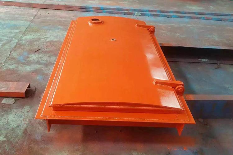 避難硐室密閉門使用對稱的方式進行安裝,它的每一個安裝件都是使用鋼材料來焊接成的。避難硐室密閉門的門扇是由井字結構來進行焊接的,反風的主要裝置是采用鋼管來插拴的,安裝的時候在合頁處涂上潤滑油,保證使用的靈活性。斜風井防爆門關門時,各部件反向擺動,到關閉狀態時成矩形狀態。