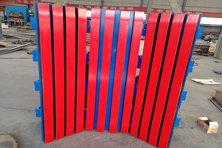 彈簧式緩沖床在原來緩沖床床體下面增加了一種裝置—彈簧緩沖裝置,這樣做用于輸送物料大、落差高的情況。有效提高了對落料的緩沖效果,同時也提高了緩沖床自身的抗沖擊強度,延長了緩沖床的壽命。相應地提高了整個輸送系統(tǒng)的工作效率,安全性高。彈簧式緩沖床適用于各類帶式輸送機,特別適用于長距離、高運速、大運量、高強度、工況惡劣的帶式輸送機。